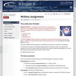 Example 12—English literature ritten assignment. DP languages teacher support material 8 Example 12—English literature ritten assignment. Created Date: 2/12/ PM IB English Lit Written Assignment Rules. Written Assignment: The Rules. The Written Assignment is composed of 4 distinct stages: The Interactive Oral – a discussion of roughly 50 minutes where we talk about the cultural background of the text and explore how understanding that background can help to give us a better understanding of the text Nov 28, · Literature Written Assignment IB The written assignment is based on one work in translation studied in part 1 of the IB course syllabus. For us,
